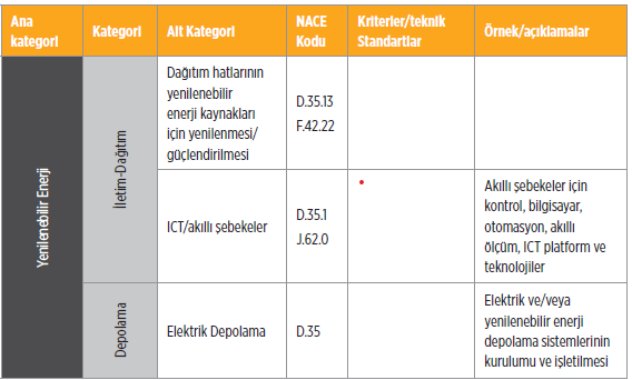 Örneğin; yenilenebilir enerji alt başlıklarında;